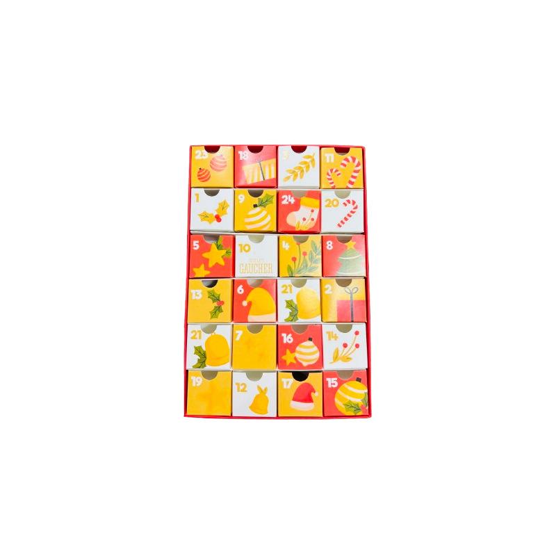 Calendrier de l'avent garni de 24 chocolats assortis.