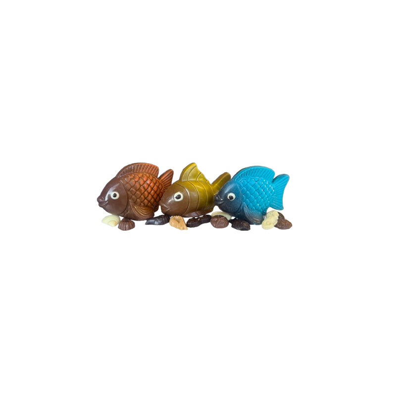 3 poissons non garnis chocolat noir, lait et caramel
